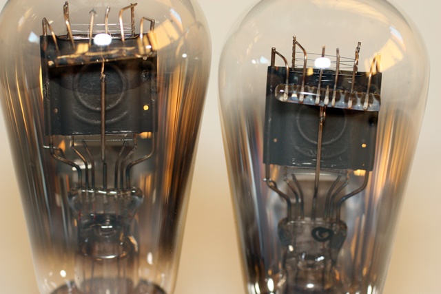 左からフィルコ(売切れ) シルバニア・タング・ソル ペリーマン・ロフチン・ホワイトアンプ 245、250と 組み合わされ使用された真空管です。 全てメッシュです。 |